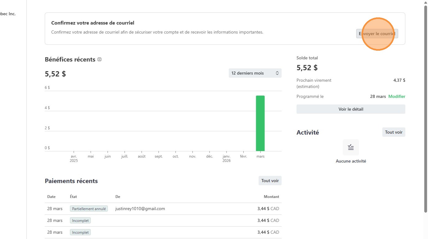 24. Une fois que vous commencerez à recevoir des paiements de Stripe, les transferts vers votre compte bancaire apparaîtront ici.