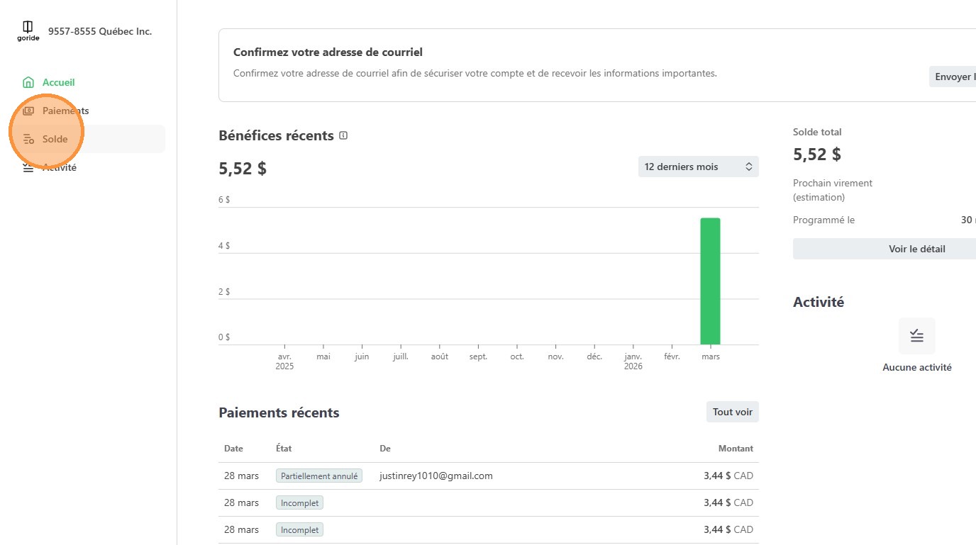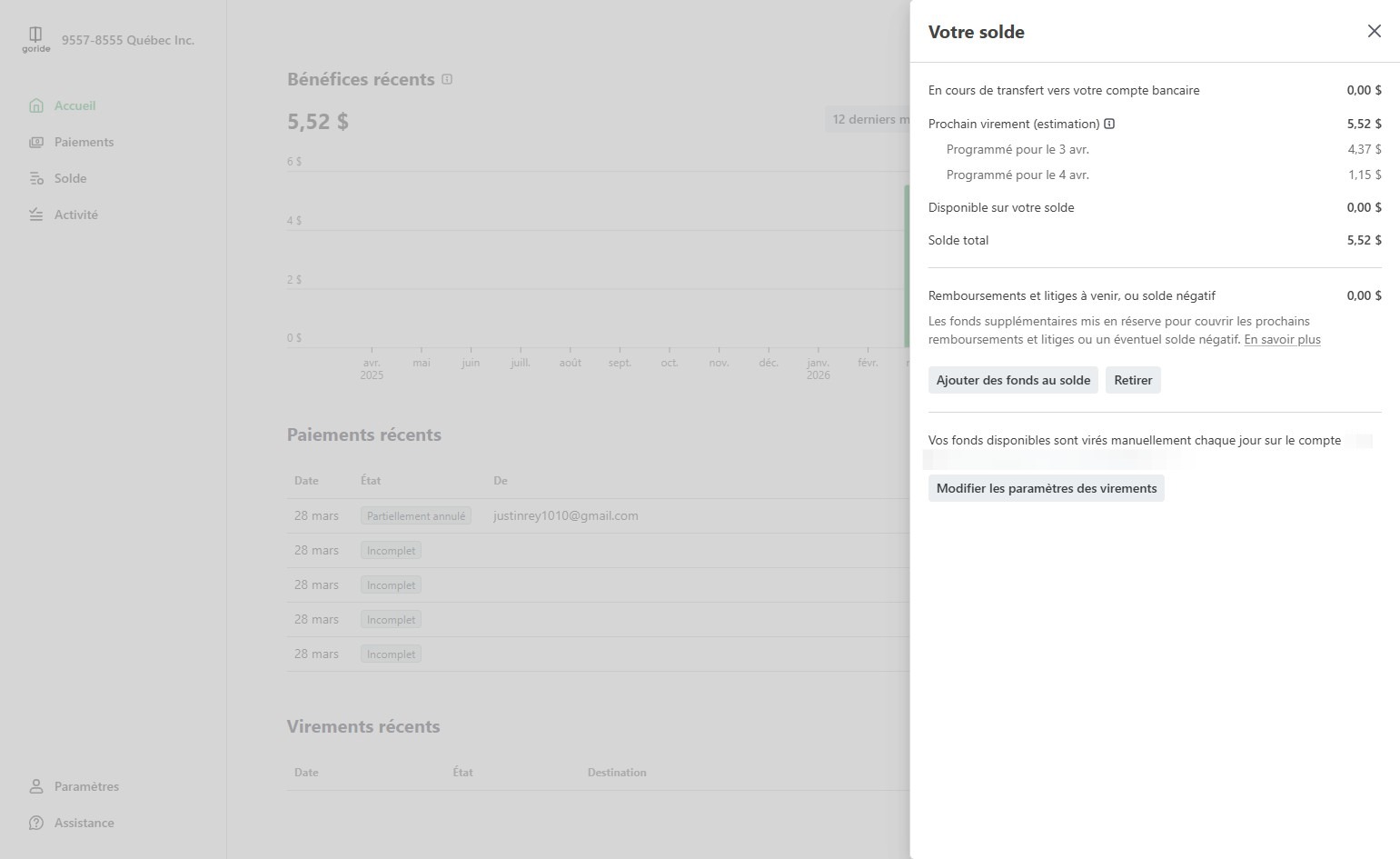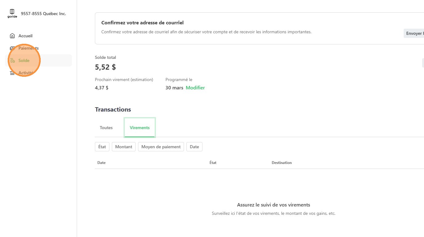 4. Cliquez sur « 9557-8555 Québec Inc. » (c’est le nom légal de GoRide).