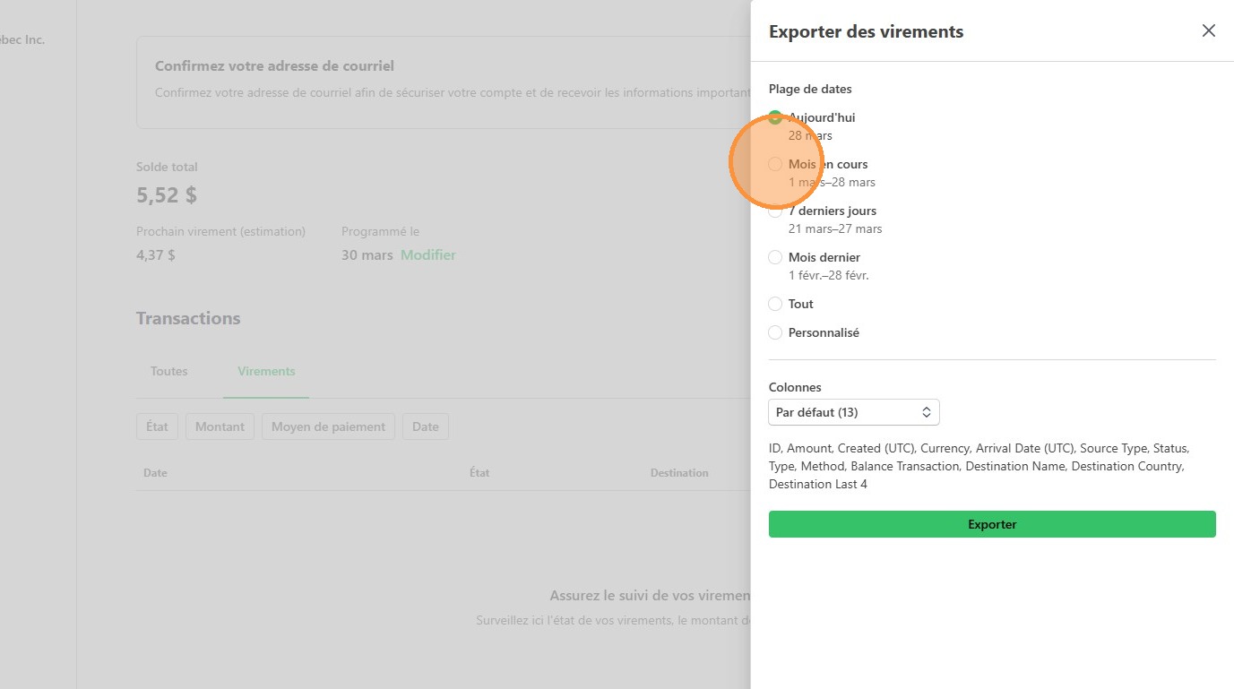 25. Choisissez la [[période]] pour laquelle vous souhaitez exporter les données.