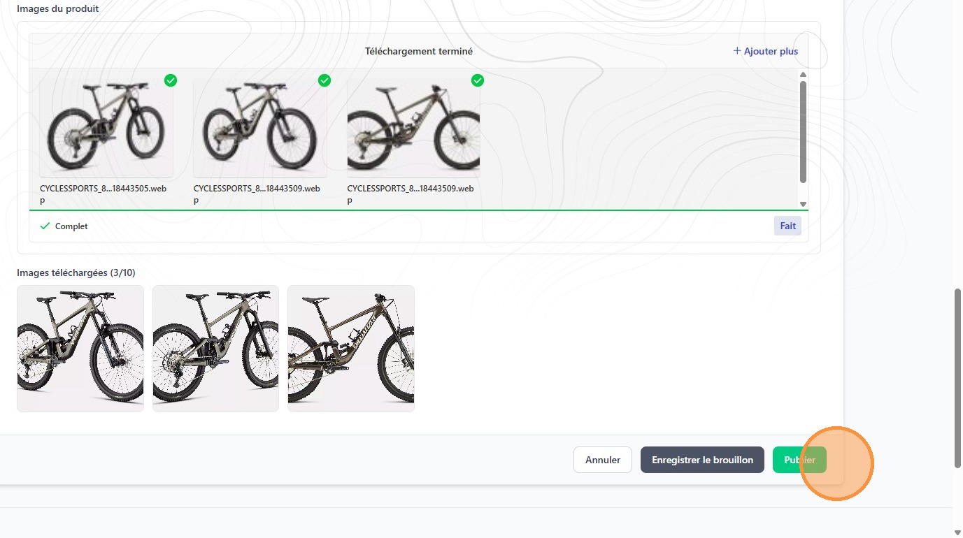 12. Click either "Annuler, Enregistrer le brouillon or Publier"