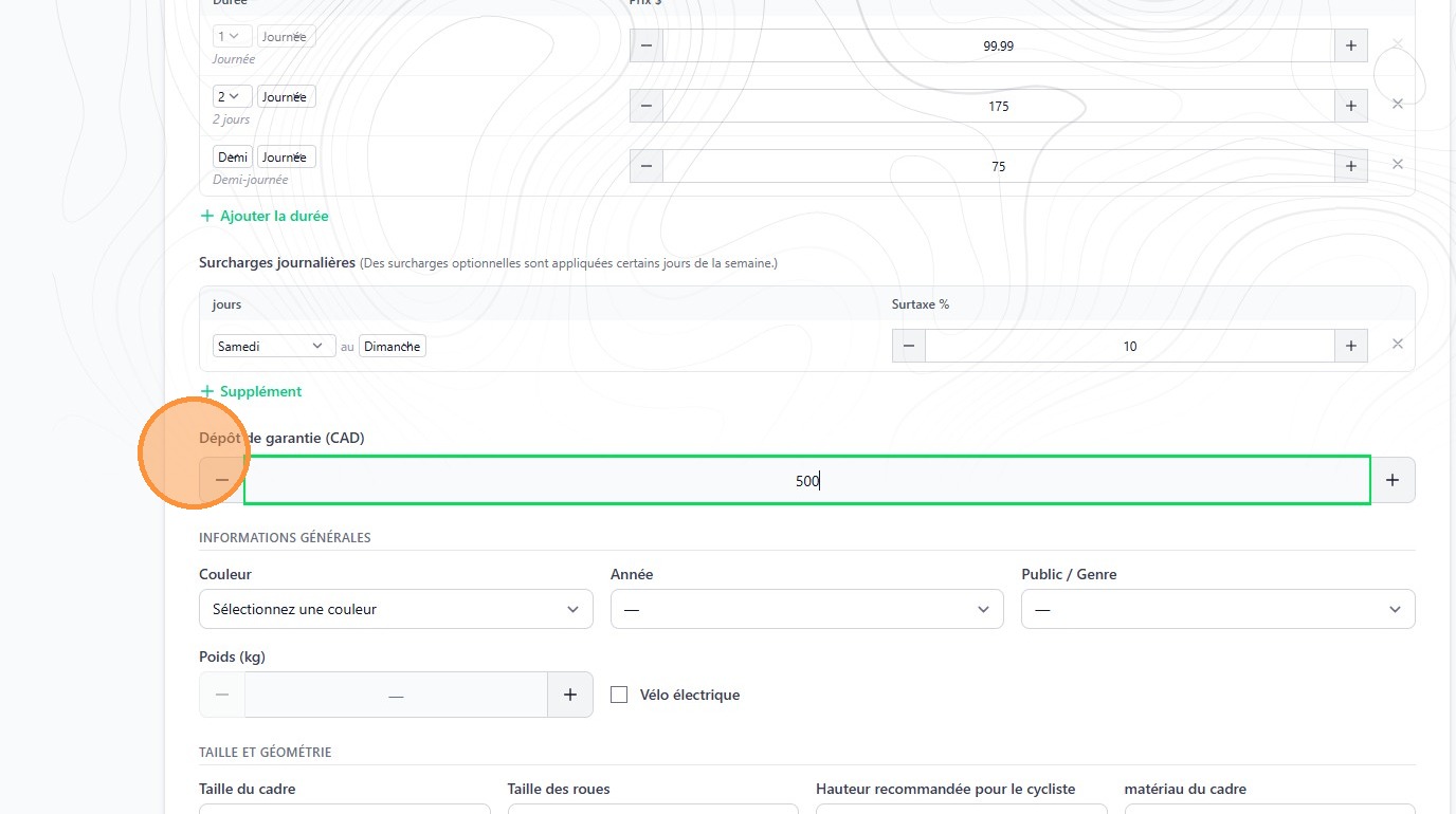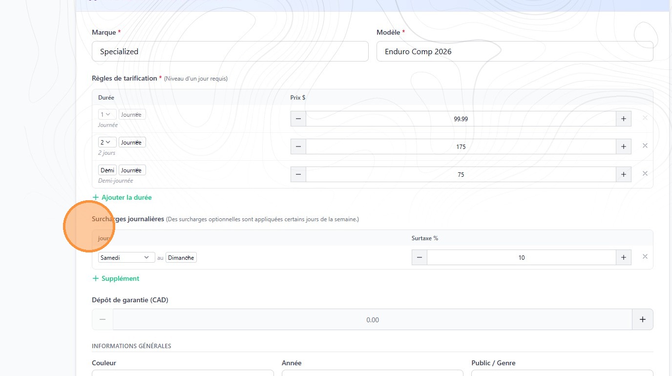 6. By default, you must set the price for a 1-day rental. In this section you can add half-day or multi-day pricing.
