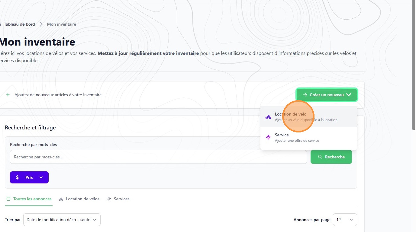 4. Click "Location de vélo"