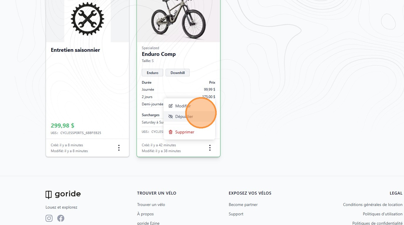 This guide provides a walkthrough for managing your bike rental inventory and services through the GoRide dashboard. Learn how to efficiently publish, unpublish, and modify your listed equipment to keep your inventory accurate for customers.